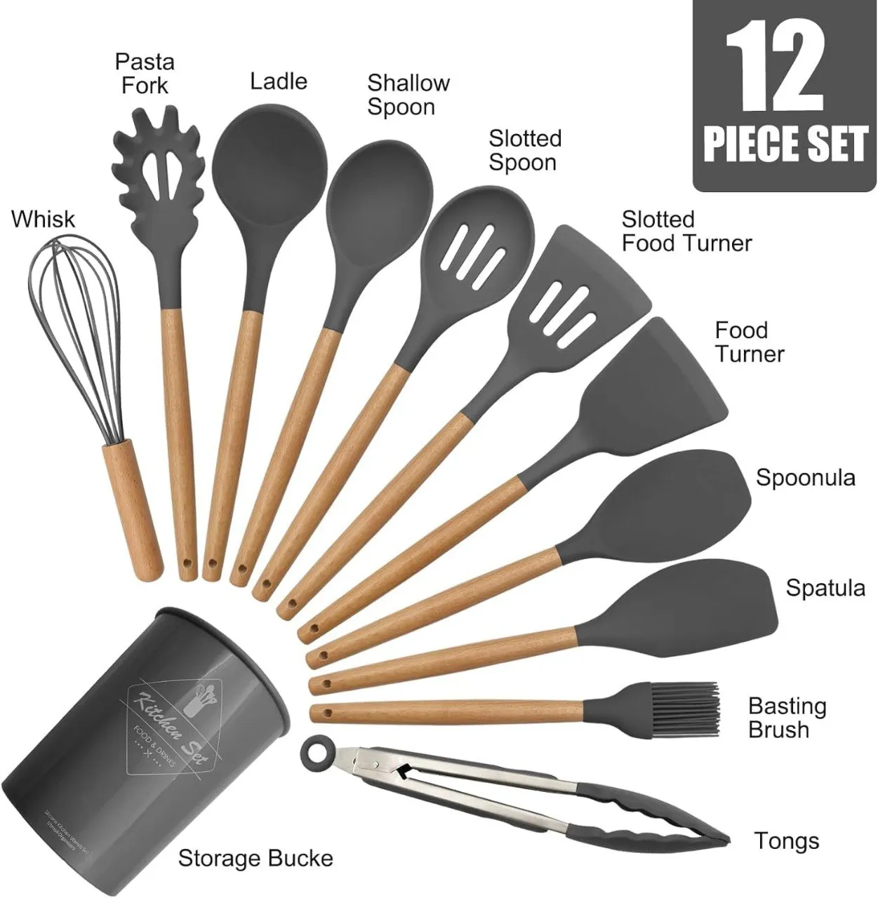 Silicone Spoon12 Set Wooden(Multi Colour)